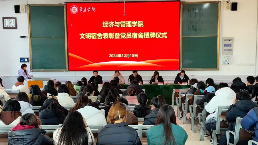 12月18日下午,beat365中文官方网站在增信楼112隆重举行了文明宿舍表彰暨党员宿舍授牌仪式。院党委书记艾衍辉出席会议并总结讲话,党委副书记谢金萍主持会议。