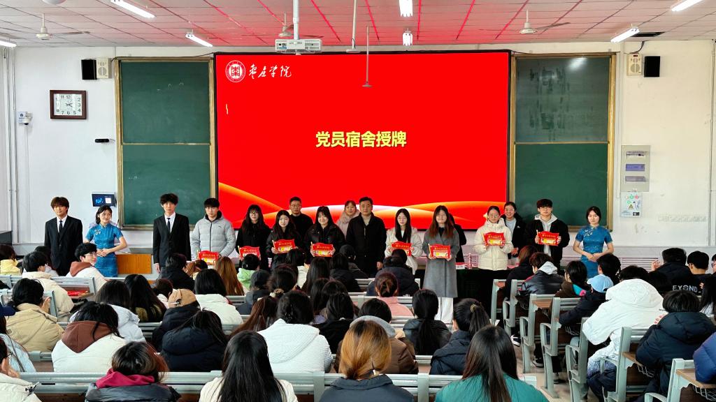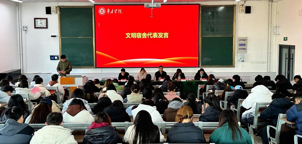 会上,首先宣读了文明宿舍评选办法以及文明宿舍名单,并对文明宿舍和党员宿舍进行了颁奖和授牌。文明宿舍代表和党员宿舍代表分别上台发言,分享了他们在宿舍建设中的经验和感悟,表达了对学院的感激之情,以及今后继续努力的决心。