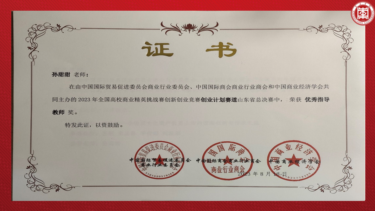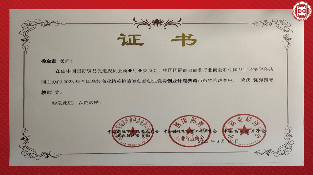 近日,2023年全国高校商业精英挑战赛创新创业竞赛(创业计划赛道)山东省总决赛落下帷幕,创业计划赛道共有来自全省70多所院校的848支队伍入围。由beat365官网代超越、王新两位参赛选手所带领的2个原创项目代表beat365中文官方网站成功入围省级决赛,与全省众多高校同台竞技、力克群雄,并斩获山东省三等奖2项。展现了beat365官网学子扎实的专业能力、卓越的创新精神和出色的团队协作能力。其中beat365官网教师杨金磊、孙甜甜荣获“优秀指导老师”奖。