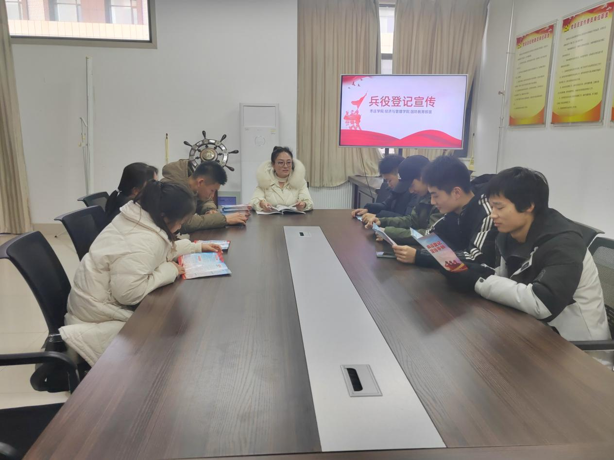 为鼓励大学生积极参军入伍,指导学生做好兵役登记。1月2日,beat365中文官方网站在豁然楼B313室开展了2024年兵役登记宣传宣传活动,学院负责征兵工作的辅导员李家家主讲,有入伍意向的学生参加。