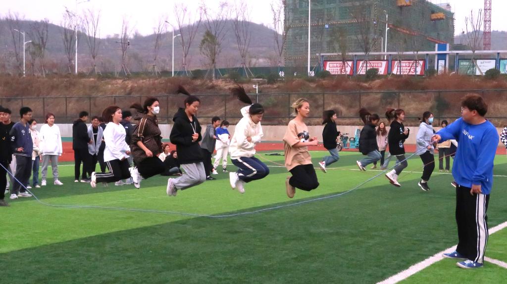 伴随着习习秋风,抢凳子游戏拉开了活动的帷幕,学生们围着凳子绕圈,听到“抢”的口令时迅速找到凳子坐下,六轮比赛后各有一名学生胜出,鼓掌声、欢笑声不绝于耳。活动如火如荼地进行着,找零钱,接力赛跑,跳大绳,三人四足考验着选手的团结与合作能力,展现了选手的激情与活力。最后的打鸭子使运动会达到了高潮,小组两两对决十分精彩。体育场上,不管是观众还是选手的兴致都十分高涨,为疫情防疫下的校园增添了活力。