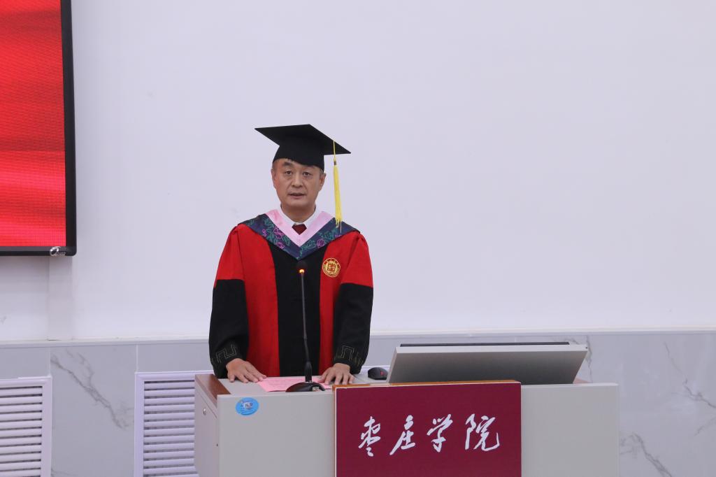 副院长杨位留宣读2022届学士学位授予决定,并宣读毕业生名单。校党委委员、副校长安涛教授为2022届本科毕业生颁发学位证书。