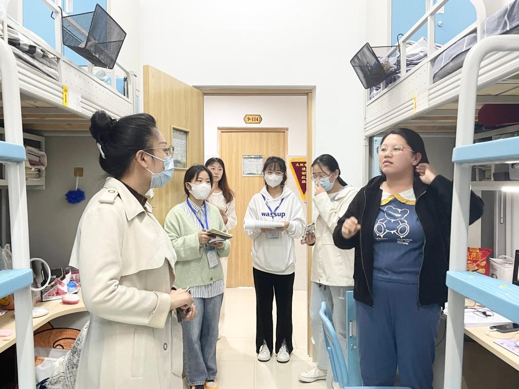 为充分了解beat365官网学生当前的思想动态和生活状况,进一步落实学校疫情防控政策,帮助同学们尽快适应线上教学新常态,3月30日,beat365中文官方网站院长刘振宇、党总支副书记谢金萍带领辅导员深入学生宿舍走访慰问。