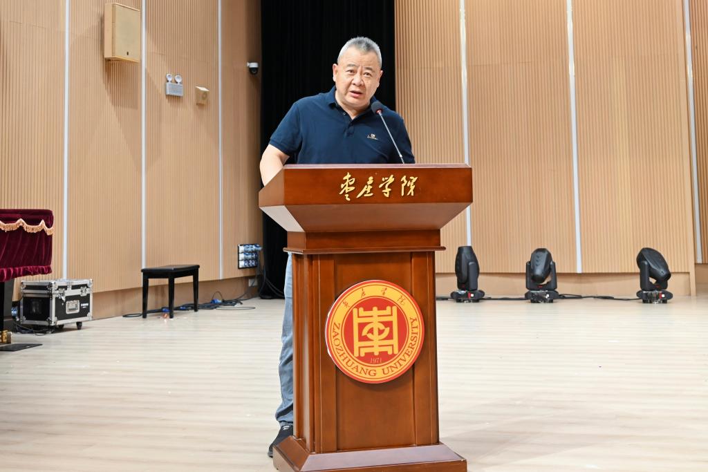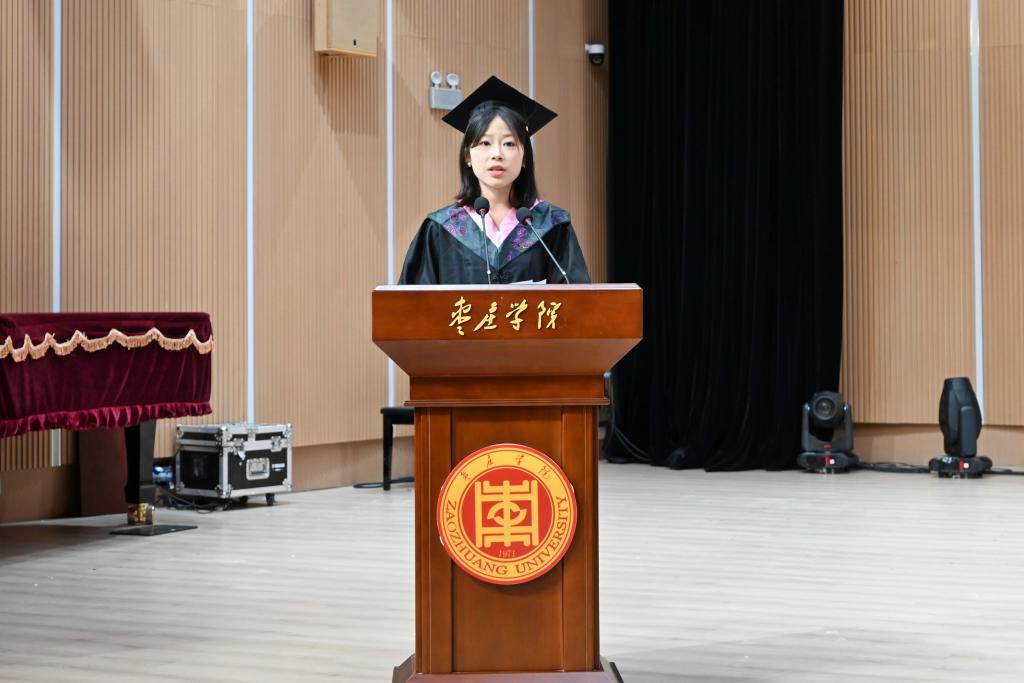 在校生代表张凤林在发言中向即将离校的师哥师姐们表达了敬意和祝福,愿他们能够勇敢地追求自己的梦想,并表示将继续为学院发展贡献自己的力量。