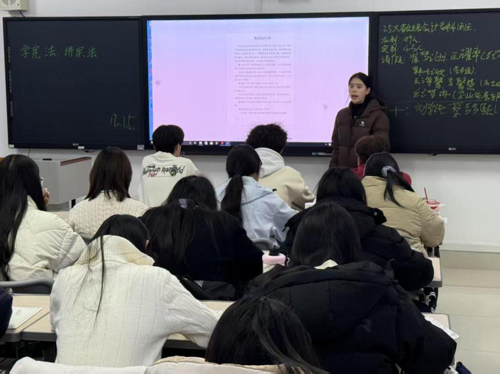 活动中,全体同学齐声诵读宪法核心条文,熟悉宪法文本、感悟根本大法的庄严与力量。同时在班长的带领下,面向宪法庄严宣誓,强化内心对宪法的尊崇与信仰。活动还设置视频学习与交流分享环节,通过集中观看法治主题相关竞赛片段与颁奖仪式,在生动真实的法治实践场景中感受宪法的精神引领与时代价值。观影结束后,大家围绕宪法内涵、法治精神及其在现实生活中的体现展开深入交流,进一步深化了对宪法权威性和现实意义的理解。